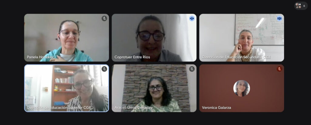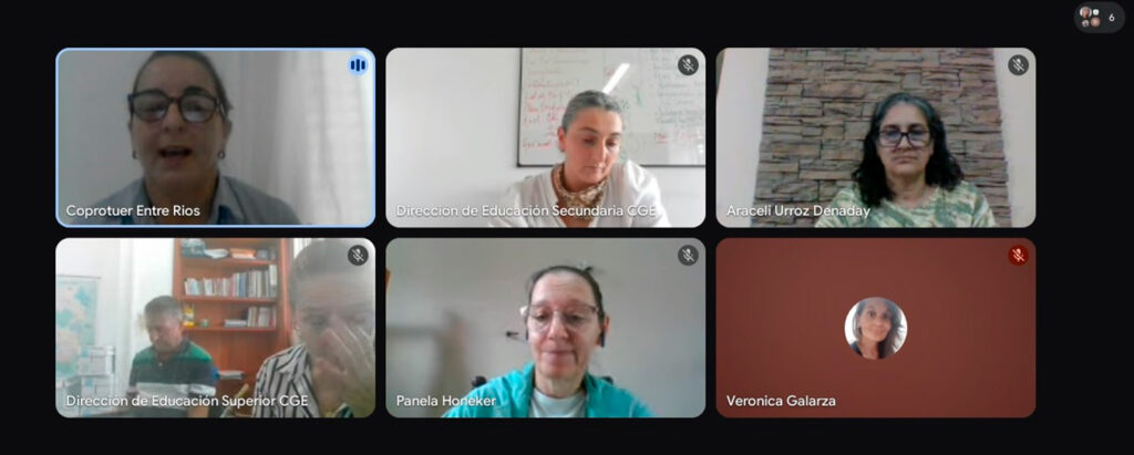 Del encuentro participaron Hernán Arlettaz, integrante del equipo técnico pedagógico de la Dirección de Educación Superior; Marianela Bondi, Subdirectora de la Dirección de Educación Secundaria; Verónica Villagra, Directora de Educación Superior del CGE; y Adriana Baron, presidenta del COPROTUER, quien estuvo acompañada por Araceli Urroz Denaday, Verónica Galarza y Panela Honeker integrantes de la Comisión de Educación de dicha institución.